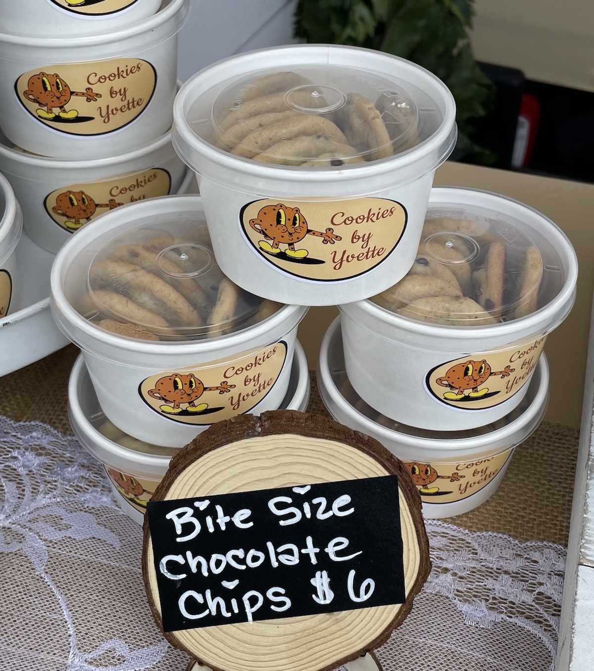 1 cup of bite size chocolate chip cookies made with love by Yvette