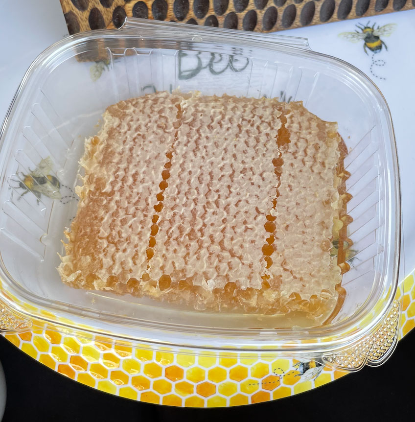 A large chunk of honey comb straight from our bee hives in southern California