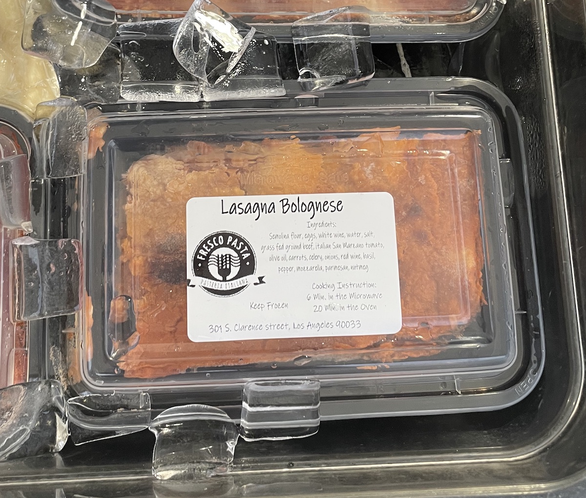 Semolina flour, eggs, white wine, water, salt, grass fed ground beef, italian San Marzano tomato, olive oil, carrots, celery, onions, red wine, basil, pepper, mozzarella, parmesan, nutmeg