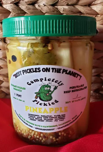- ($10.50) Pineapple – “Soon to be world Famous”-Fresh Pineapple that’s pickled in a sweet, spicy, sour brine