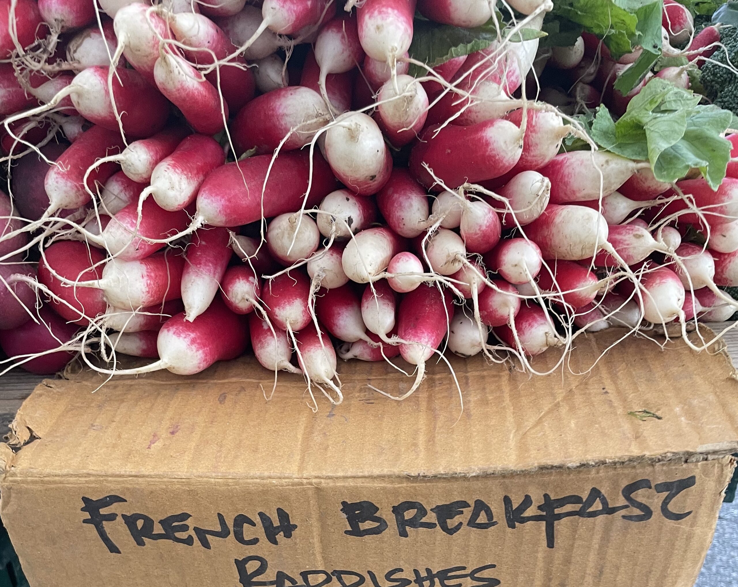 French breakfast radishes are a type of radish that is characterized by its small, round shape and its mild, slightly sweet flavor. They are a popular ingredient in salads and sandwiches, and are often served raw as a snack or a garnish.