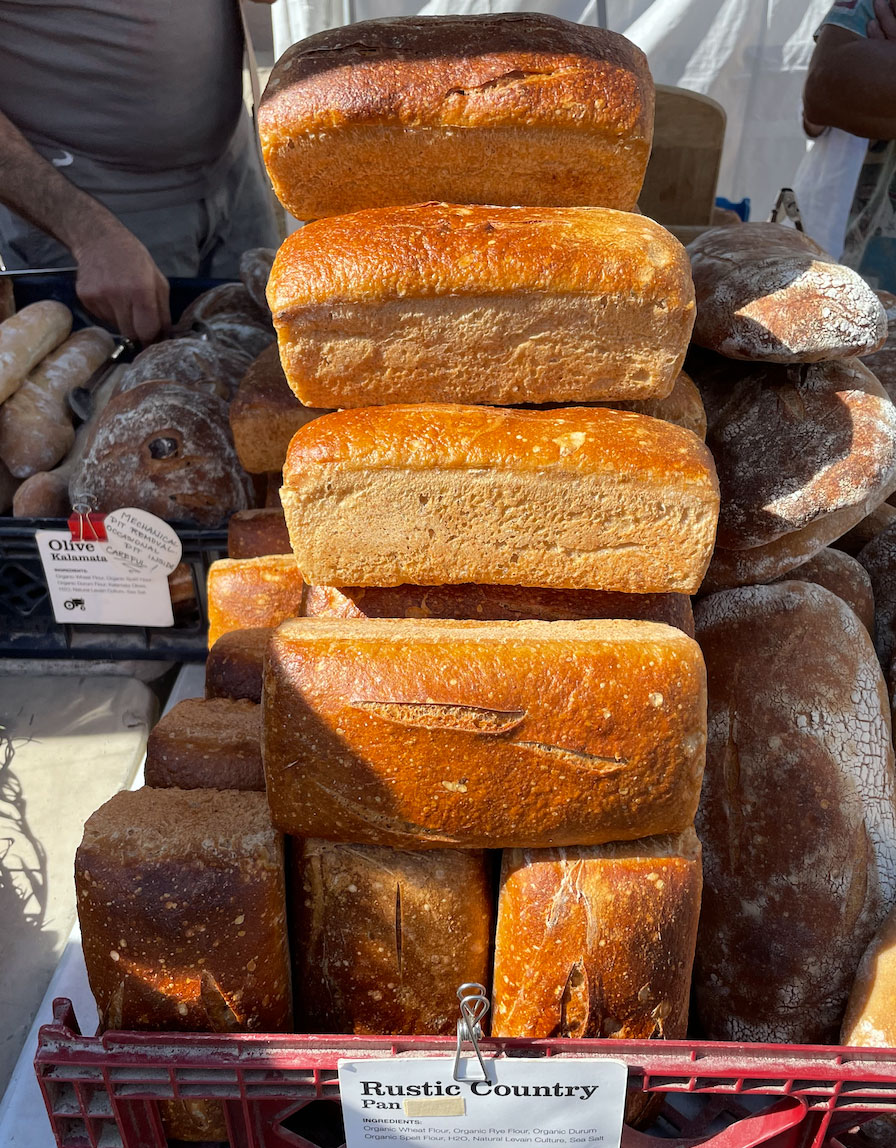 Fresh baked bread made from freshly milled organic whole grains.