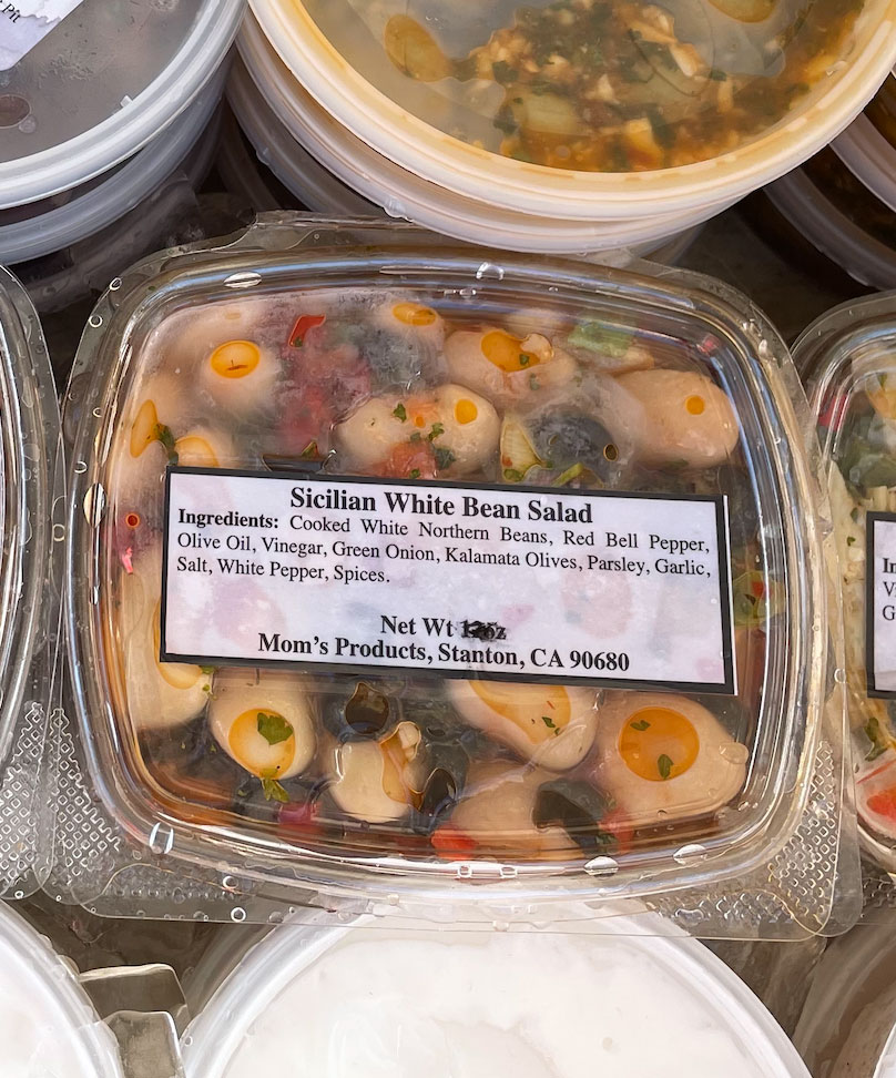Ingredients: cooked white northern beans, red bell pepper, olive oil, vinegar, green onions, kalamata olives, parsley, garlic, salt, white pepper, spices