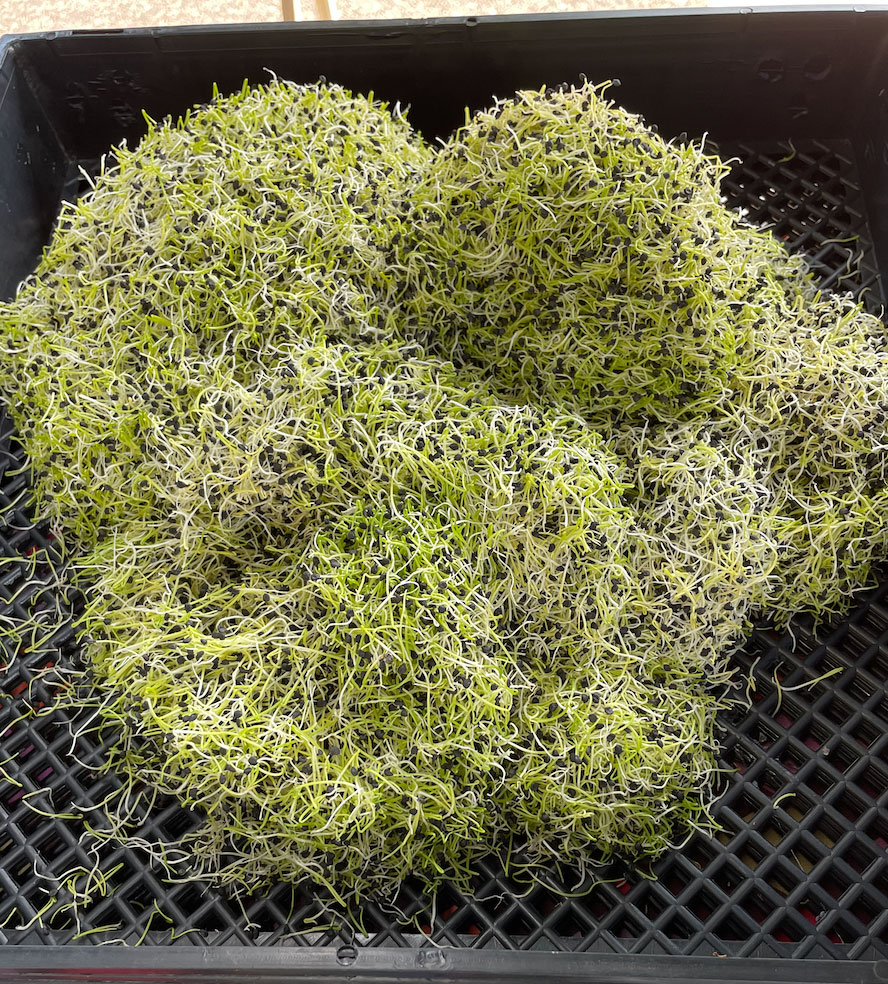 Fresh, naturally grown onion sprouts with no additives grown in southern California.