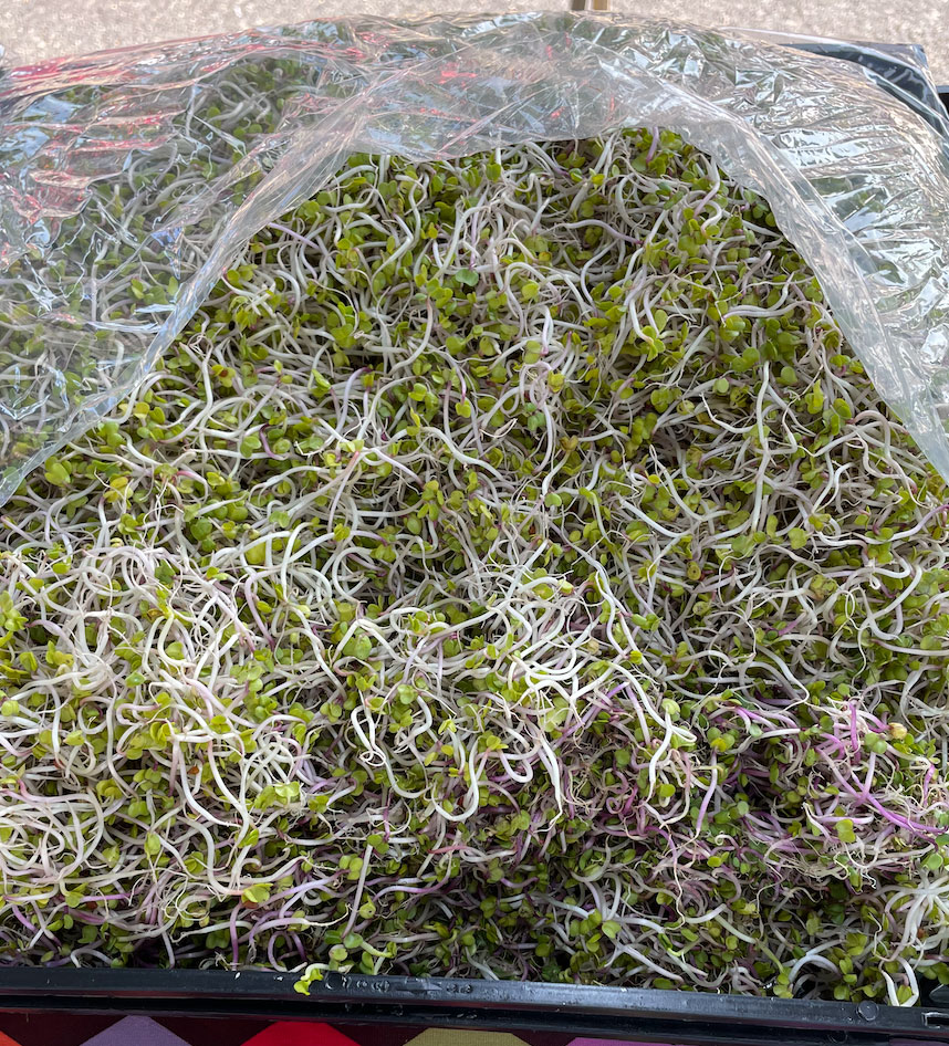 Fresh, naturally grown radish sprouts with no additives grown in southern California.
