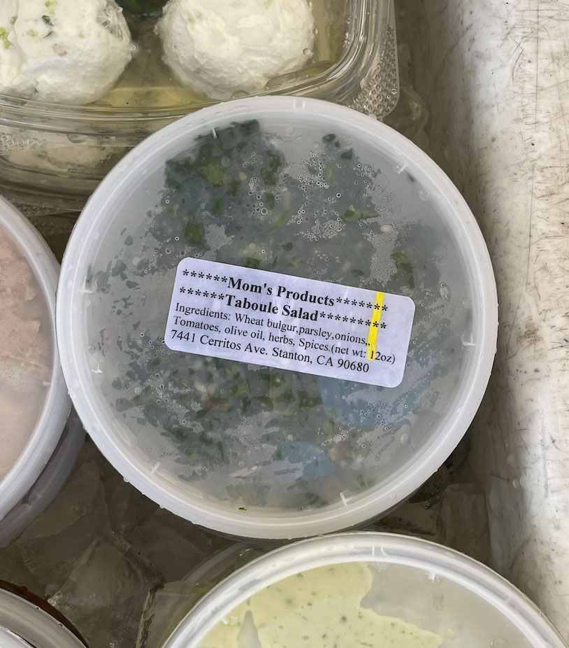 Ingredients: wheat bulgar, parsley, onions, tomatoes, olive oil, herbs, spices
