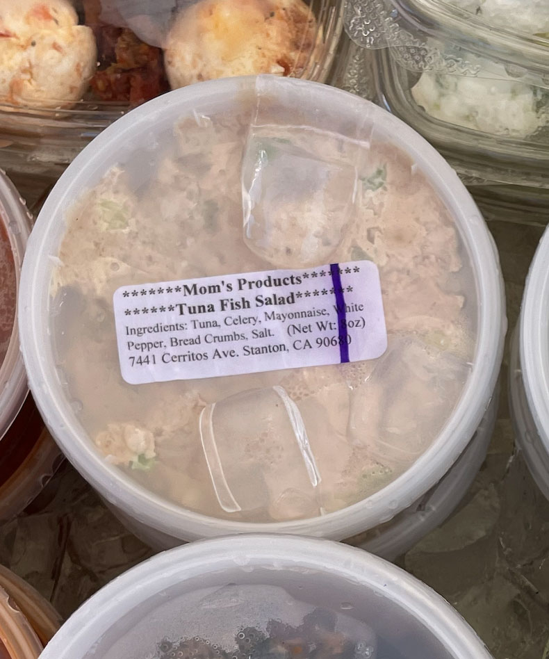 Ingredients: tuna, celery, mayonnaise, white pepper, bread crumbs, salt