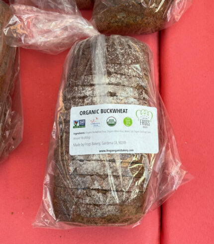 $8.00From: Frogs Bakery Size: 1 lb (450 g) Buckwheat based loaf with 5 different certified ORGANIC seeds: flax, sesame, poppy, sunflower, pumpkin. Promotes high in protein and high in fiber.