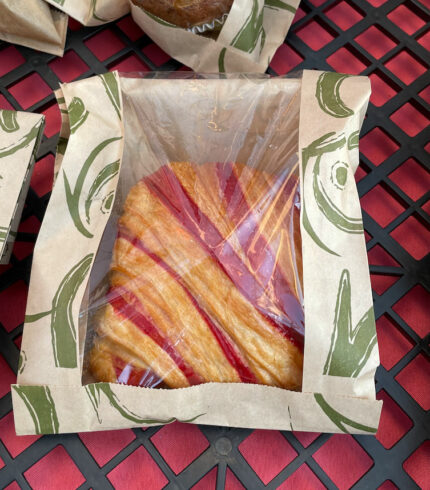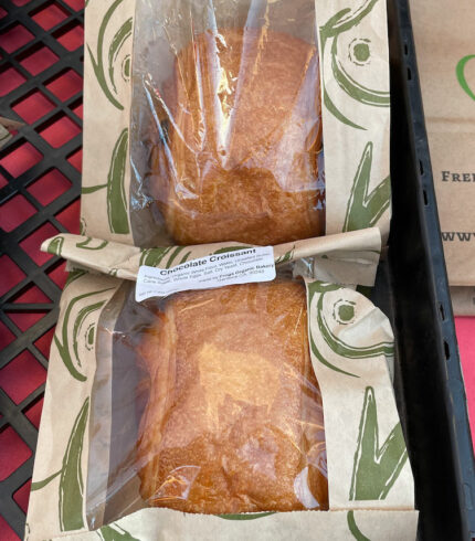 $5.00From: Frogs Bakery Chocolate – Made from scratch, delicately hand rolled with dark chocolate inside. You’re going to melt for it… Raspberry – Want to add a sweet fruity taste to your croissant? Try our Raspberry croissant! Pistachio – The base is a croissant, the rest is a fresh pistachio