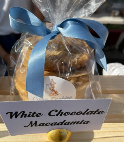 $2.50 – $14.00From: Cairn Cookies Decadent white chocolate paired with roasted salty macadamia nuts in a delicious vanilla bean cookie dough. Pricing: $2.50 for 1 cookie | $14 for a cairn (6 cookies)