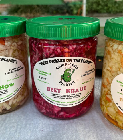 $9.00From: Completely Pickled Size: 1 pint Flavors Krazy Kraut – Amazing sauerkraut with a kick and hint of carraway seed Cali Kraut – Kale, Carrot, Horseradish and Cabbage. It will liven up any sandwich, salad or rice bowl. Beet Kraut – Krazy Kraut and chopped Beets, what a combo!! Turmeric/Ginger