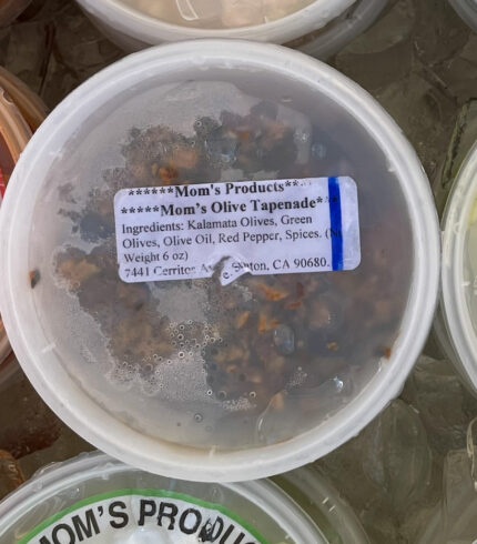$6.00From: Mom’s Products Size: 6 oz Fresh made olive tapenade Ingredients: Kalamata olives, green olives, olive oil, red pepper spices