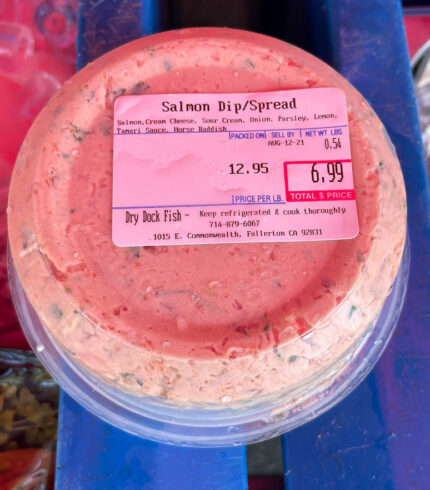$9.98From: Dry Dock Fish Co. Fresh made salmon spread Ingredients: Salmon, Cream Cheese, Sour Cream, Onion, Parsley, Lemon, Tamari Sauce, Horse Radish **Seafood will be packed with ice** Pricing: $19.95 per lb