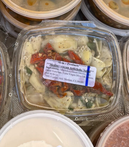 $6.00From: Mom’s Products Size: 6 oz Fresh made artichoke salad with sun dried tomatoes Ingredients: Artichokes, Green Onion, Sun Dried Tomatoes, Extra Virgin Oil, Spices