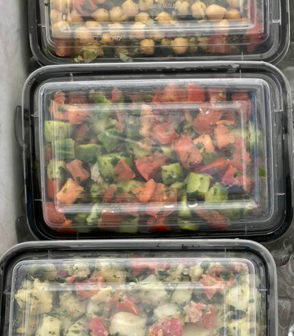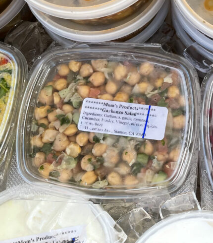 $6.00From: Mom’s Products Size: 8 oz Fresh made garbonzo salad Ingredients: garbonzo beans, garlic, tomato, cucumber, parsley, garlic, vinegar, olive oil spices