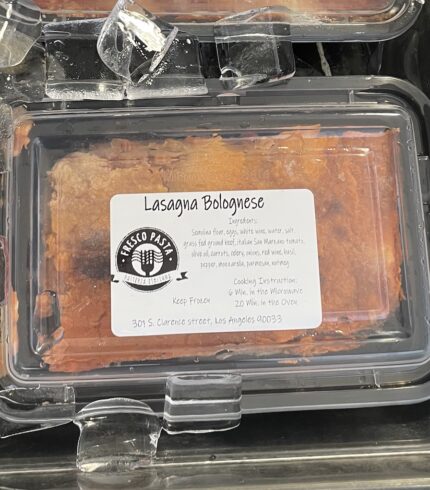 $15.00From: Fresco Pasta Ingredients: Semolina flour, eggs, white wine, water, salt, grass fed ground beef, italian San Marzano tomato, olive oil, carrots, celery, onions, red wine, basil, pepper, mozzarella, parmesan, nutmeg