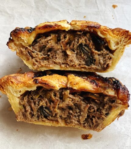 $12.00From: Hemera’s Bench Juicy beef tenderloin and portobello mushroom slow-braised in the iconic Irish dark stout, giving this pie a kiss of coffee and chocolate notes. Popular with our Aussie and British customers.