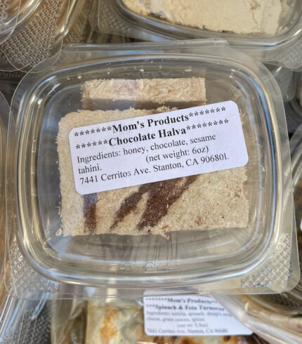 $6.00From: Mom’s Products Size: 6 oz Fresh made halva Ingredients: honey, pistachios, sesame, tahini