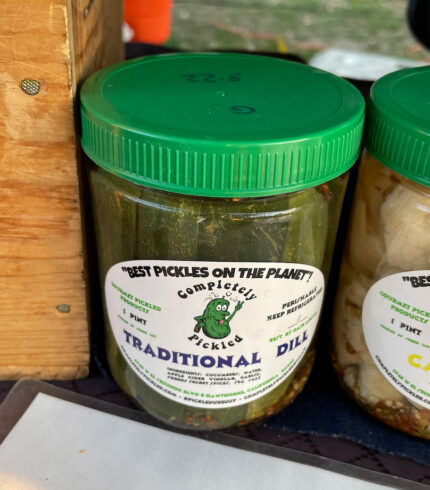 $9.00From: Completely Pickled Size: 1 pint Artisan pickles created in a non-traditional way. Our incredible, unique pickles are made with apple cider vinegar without sugar, preservatives or gluten. Flavors Traditional – Crunchy, garlicky dills that will make you smile Smoky – 2 smoked Morita chiles give this pickle a smoky