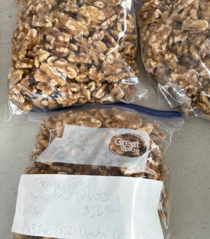 $7.00From: G Farms Amt: 1/2 lb bag Organic walnuts from our farm in southern California