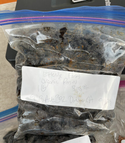 $10.00From: Etheridge Farms Amt: 1 bag (1 lb) Organic raisins from our farm in southern California
