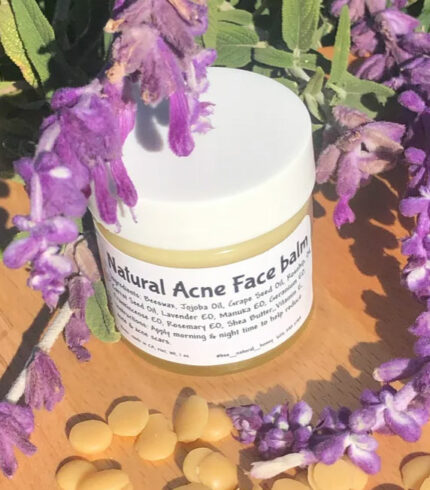 $15.00 – $30.00From: Bee Natural Honey All natural acne face balm is made with beeswax, oils and essential oils that helps reduce acne prone skin and acne scars . The vitamin A in beeswax, along with the antiseptic and healing properties are good to help reduce acne. By fighting bacteria and restoring