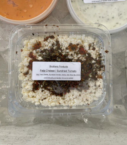 $6.00From: Brothers Products Size: 8 oz Fresh feta cheese and sun dried tomatoes made from our family’s great recipe in southern California. Ingredients: feta cheese, sun dried tomato, herbs, salt