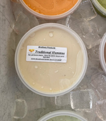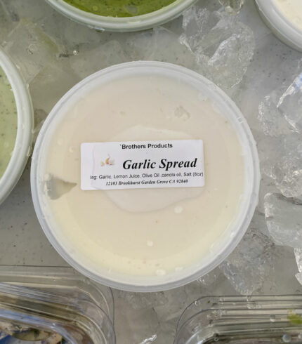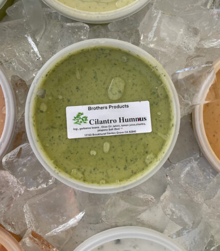 $6.00From: Brothers Products Size: 8 oz Fresh garlic spread made from our family’s great recipe in southern California. Flavors: Traditional Hummus | Roasted Garlic Hummus | Avocado Hummus | Cilantro Hummus | Roasted Red Pepper Hummus | Chipotle Black Beans Hummus | Spicy Hummus | Habanero Hummus | Artichoke Hummus