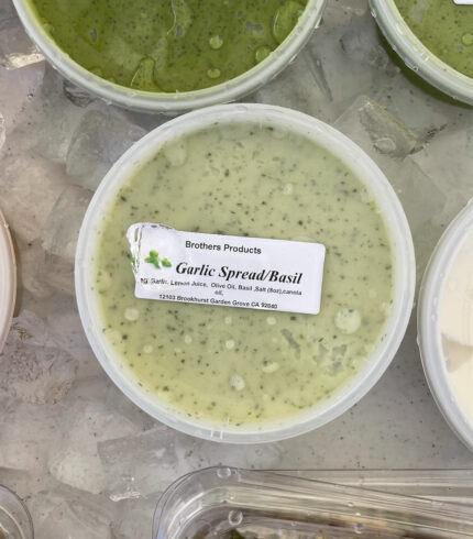 $6.00From: Brothers Products Size: 8 oz Fresh garlic spread made from our family’s great recipe in southern California. Flavors: Garlic Spread | Garlic & Sun Dried Tomato Spread | Spinach Artichoke Garlic Spread | Basil Garlic Spread | Chipotle Garlic Spread | Jalapeno Garlic Spread | Rosemary & Ginger Garlic