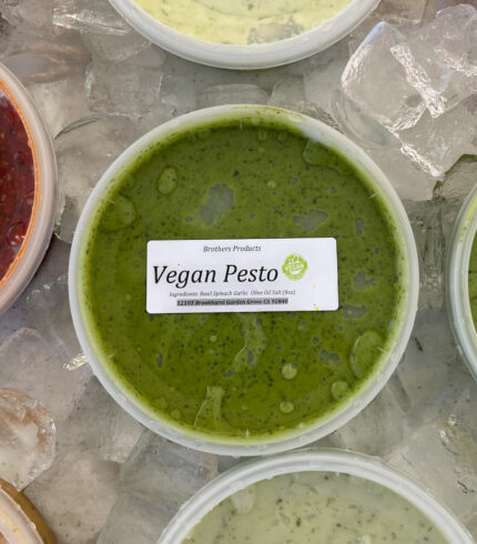 $6.00From: Brothers Products Size: 8 oz Fresh pesto made from our family’s great recipe in southern California. Flavors: Spinach Basil Pesto | Sun Dried Tomato Pesto | Vegan Pesto