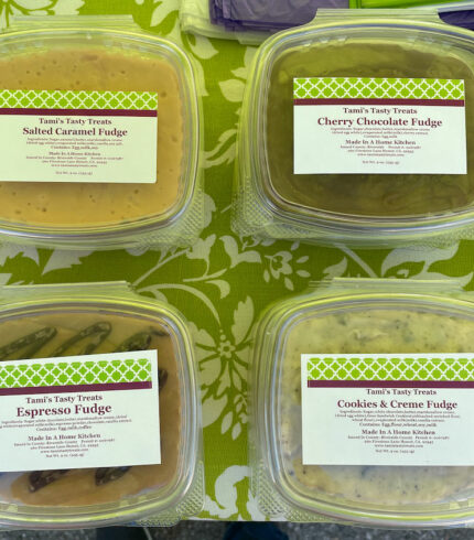 $30.00From: Tami’s Tasty Treats Size: 9 oz Homemade fudge & brittle in a variety of wonderful flavors that will surely hit the spot. Flavors: Chocolate Fudge | Chocolate Walnut Fudge | Cherry Chocolate Fudge | Mint Chocolate Fudge | Spicy Chocolate Fudge | White Chocolate Fudge | Lemon Chiffon Fudge